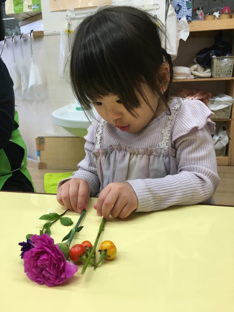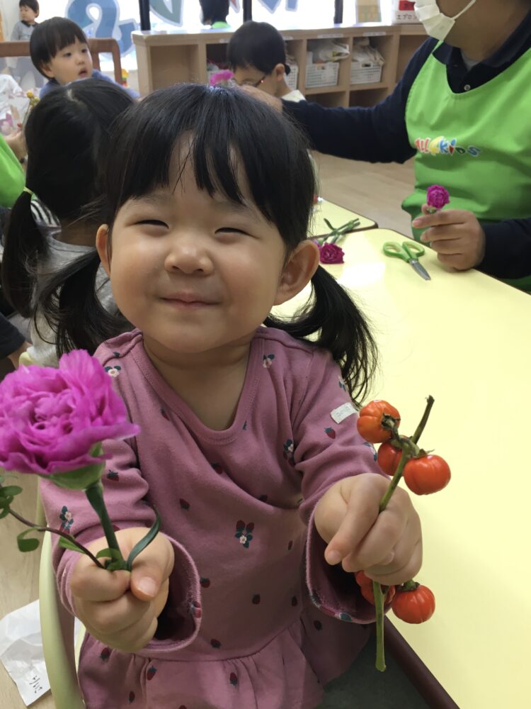 どのお花を挿そうかなと考えながら、楽しそうに挿していましたよ🎵
