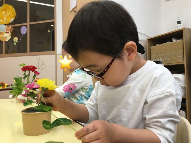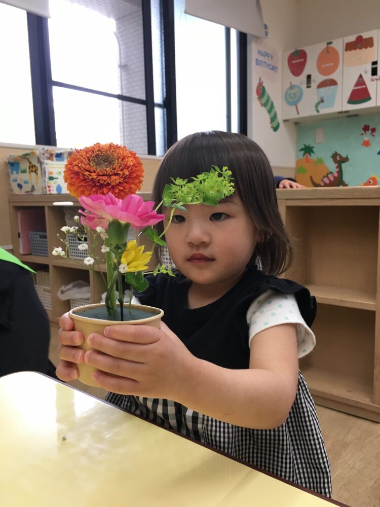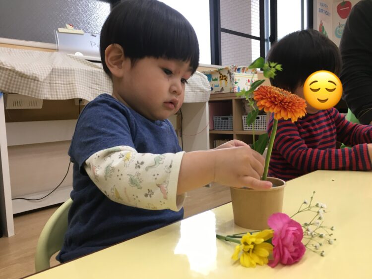 めろん組さんはお花の持ち方が上手で、とても丁寧に、慎重に挿していく様子が印象的でした。
