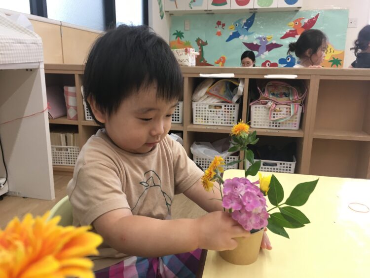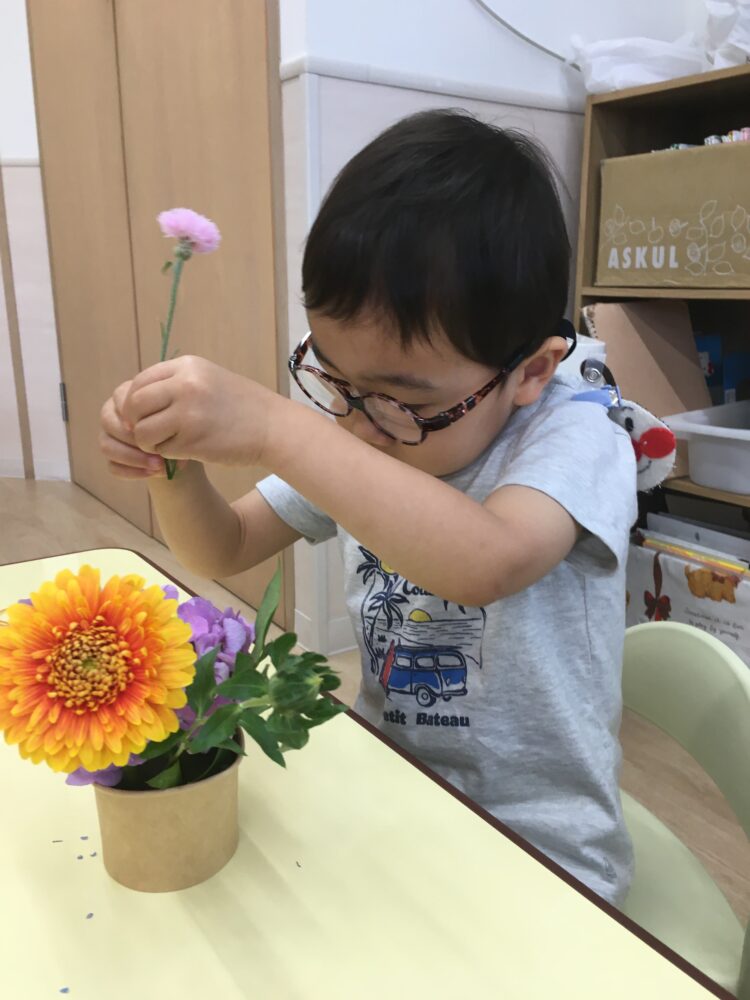 お花を紹介していると、目を輝かせながら一生懸命お話を聞いていました。