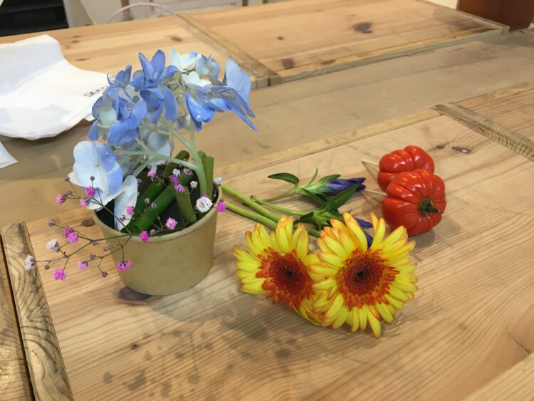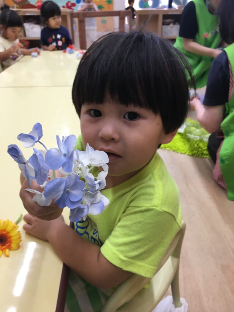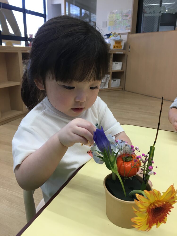 みんな思い思いにお花を挿し、作品が完成すると、嬉しそうに見せてくれました 😆