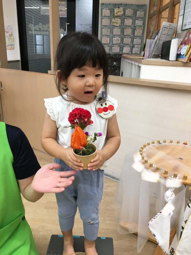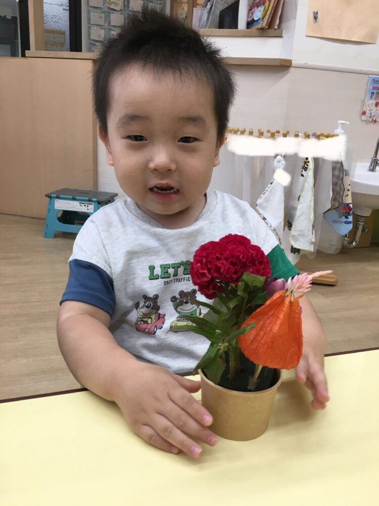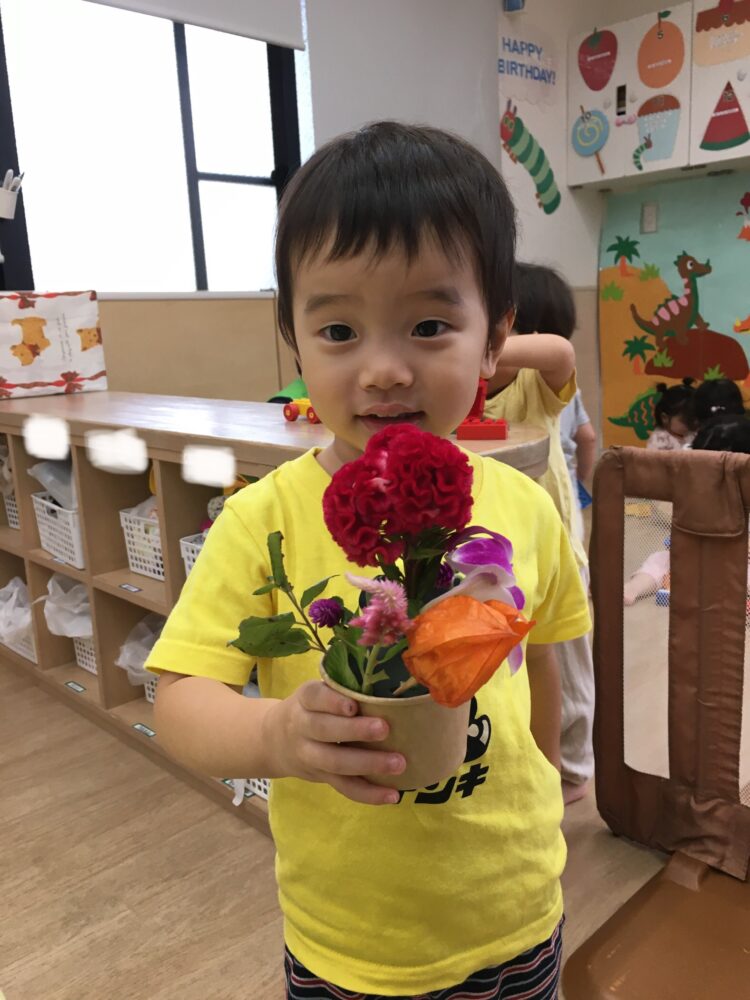 どのお花を挿そうかなと考えながら、思い思いにお花を挿していました。