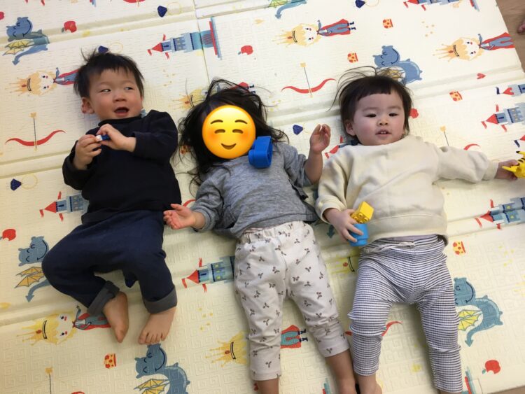 お友だちの遊んでいる所を転々と移動して、様子を見ていたいちご組さん🍓
