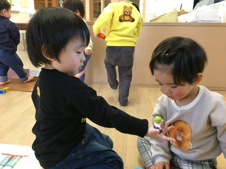 最近は、めろん組さんとばなな組さんの間でも、おもちゃの貸し借りが少しずつできるようになっています☺️
