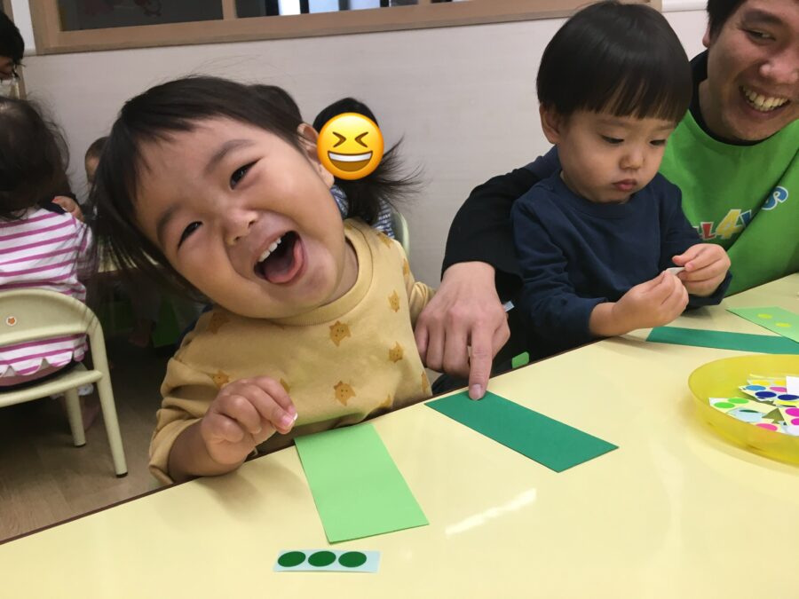 今日は、画用紙にシール貼りをしました😆✨