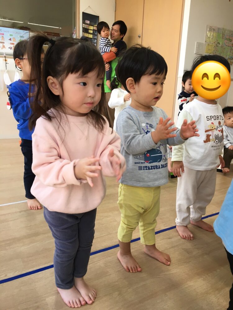 リトミックの始まりは、いつも、ご挨拶と『小さな世界』の曲に合わせた手拍子です。