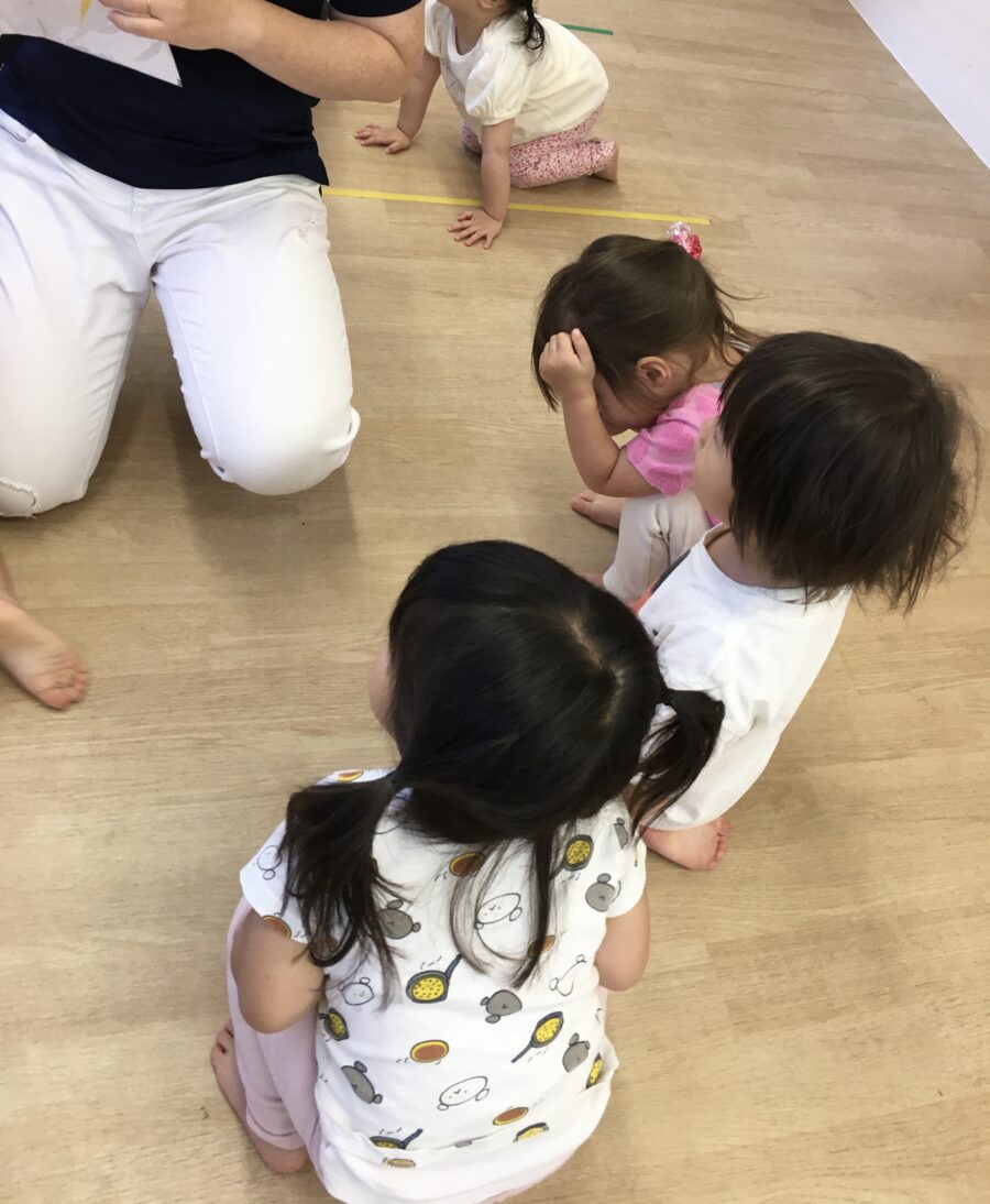 ピアノの音を聴き分けて、頭をちょんちょんとしたり、お膝をトントン叩いたり…😌