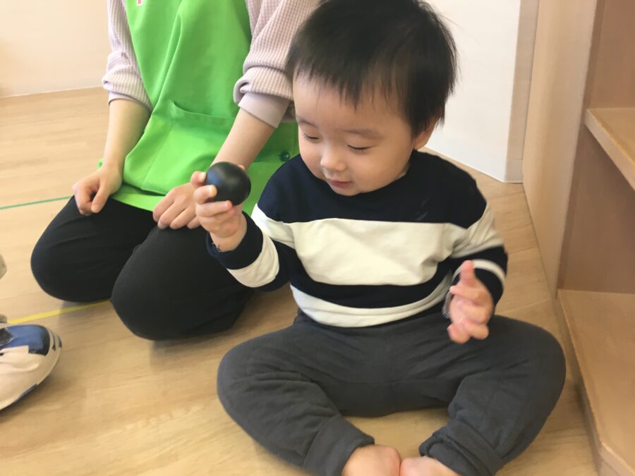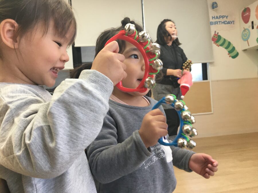 ピアノのリズムに合わせて、タンバリンをトントンと叩く時には、自分の所に早く来ないかとソワソワし、近くにタンバリンがくると、離れたところから手を伸ばして叩こうとしていて可愛らしかったですよ😄