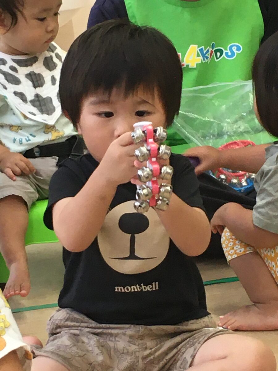 楽器の演奏では、楽器を配っている時に「私赤がいい😄」などとお目当ての楽器を選んでいる子ども達🍀