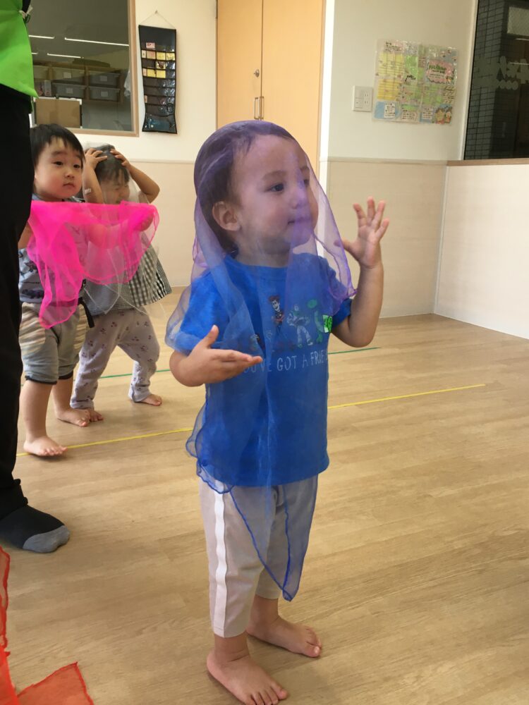 『梅雨』をテーマに、歩いたり、シフォンスカーフで表現したりしました🍀✨