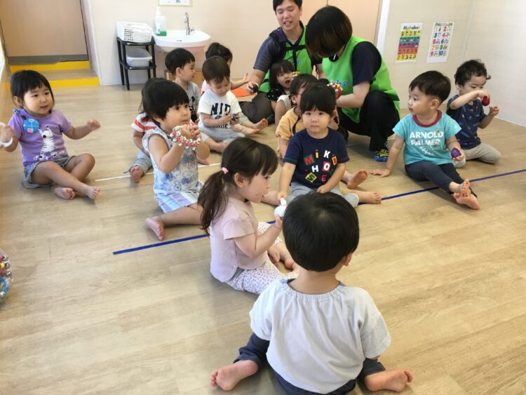 また、鈴やマラカスで『おばけなんてないさ』の歌に合わせて楽しそうに音を鳴らしていました。