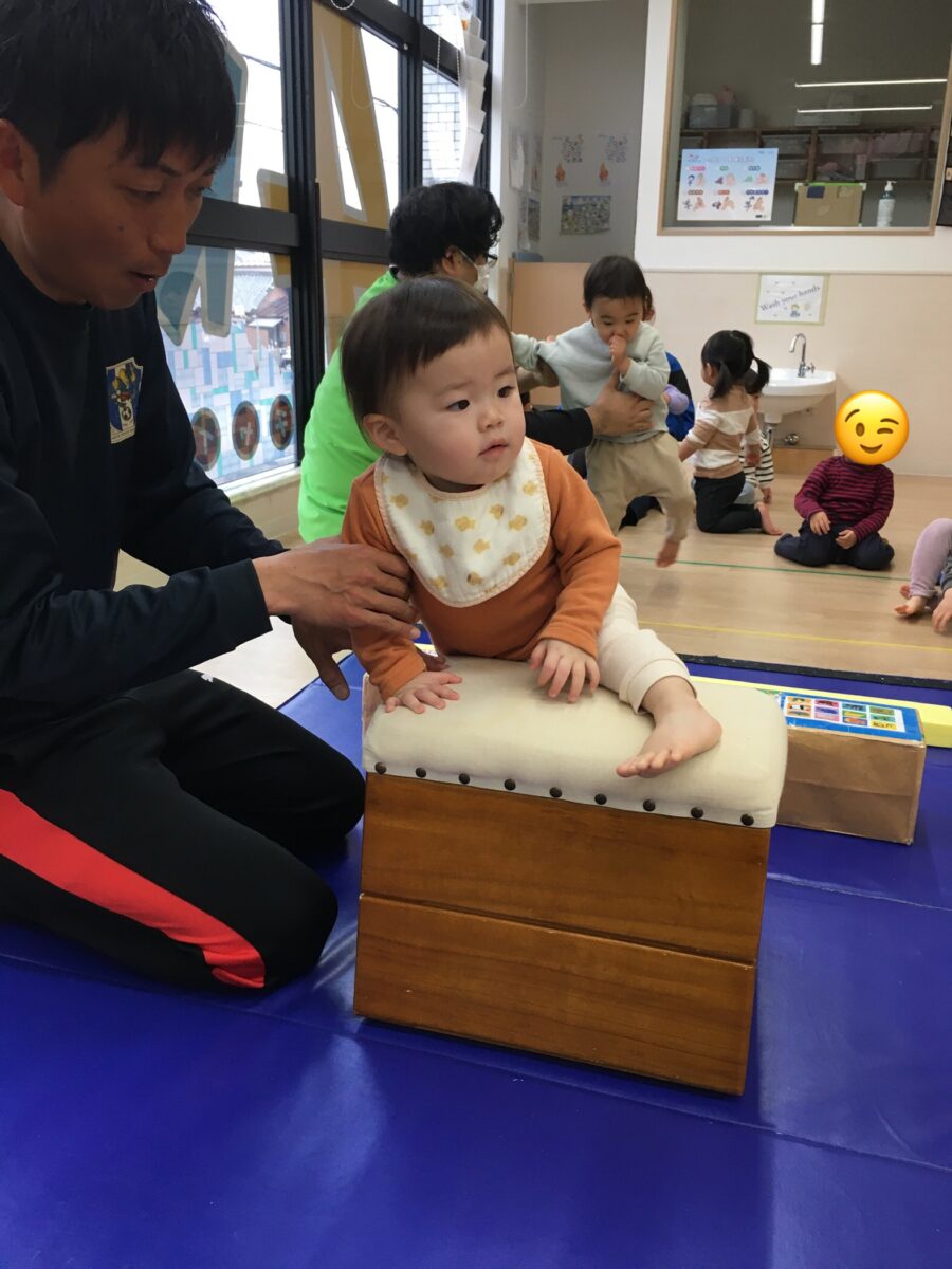 いちご組さんも、自分から跳び箱に上ろうとする姿が見られました。