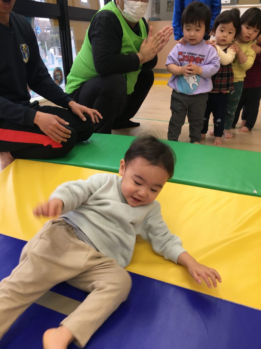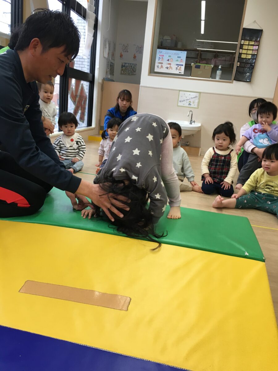 でんぐり返しでは、少しずつ補助がなくても、自分で回れる子が増えてきました。