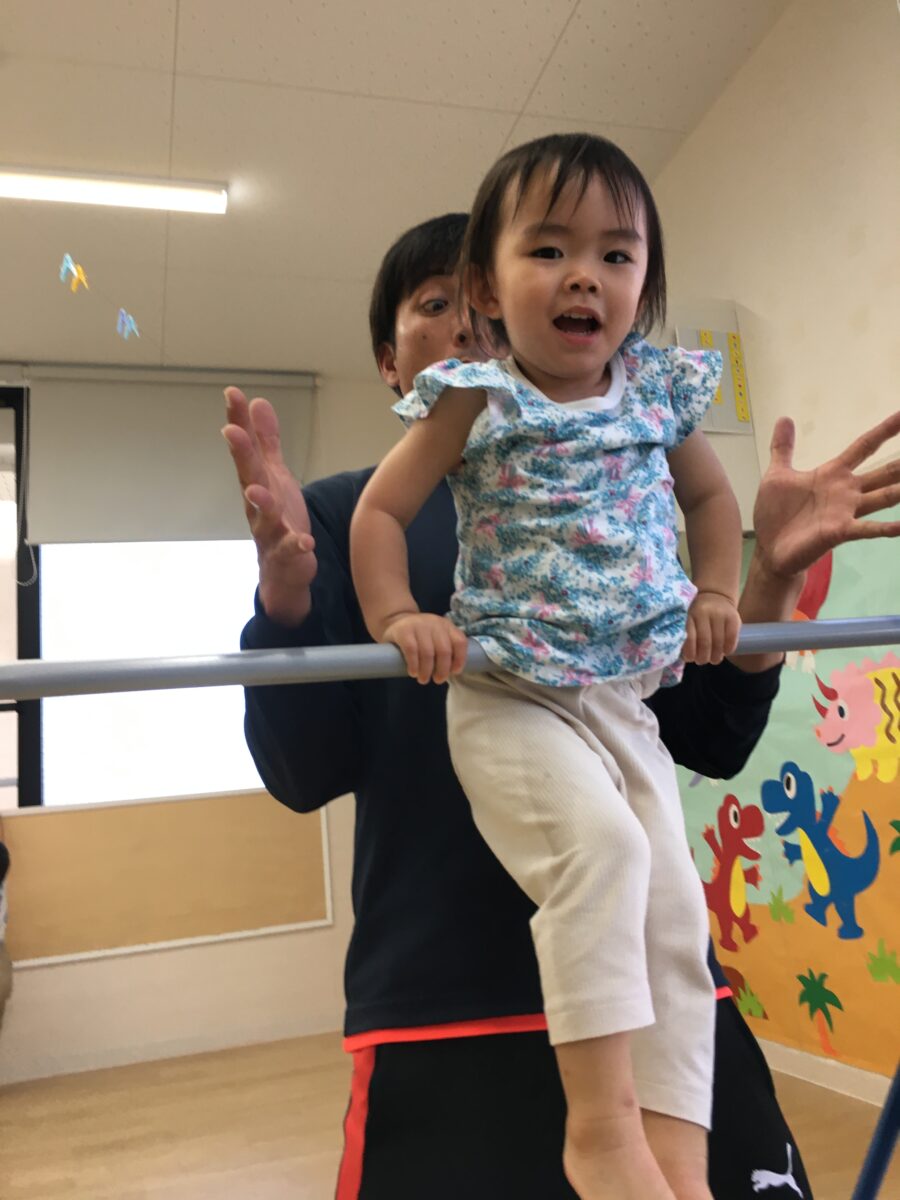 ばなな組さんは、鉄棒を持って体を支えるポーズ(つばめ)に挑戦💪🏻