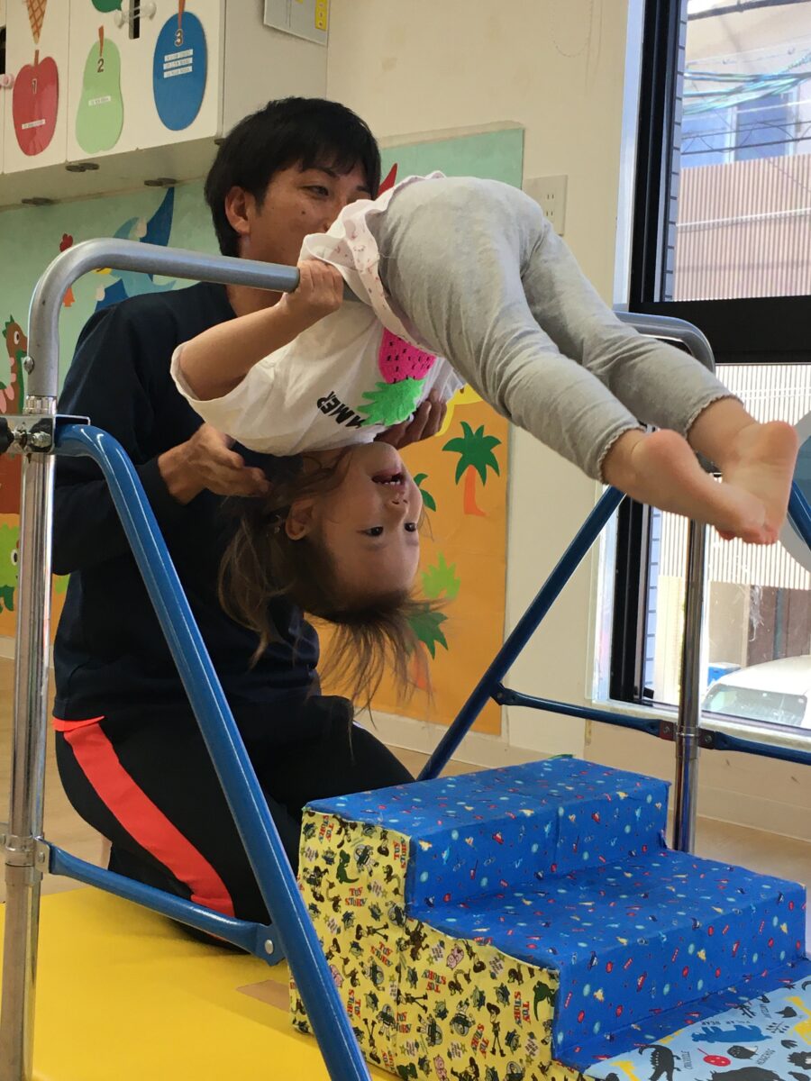 怖がる子はおらず、みんな鉄棒を持って、触って笑顔で挑戦していました。