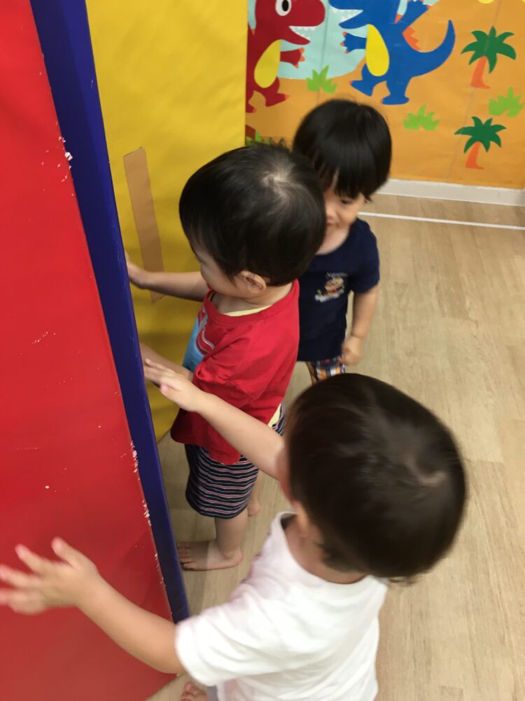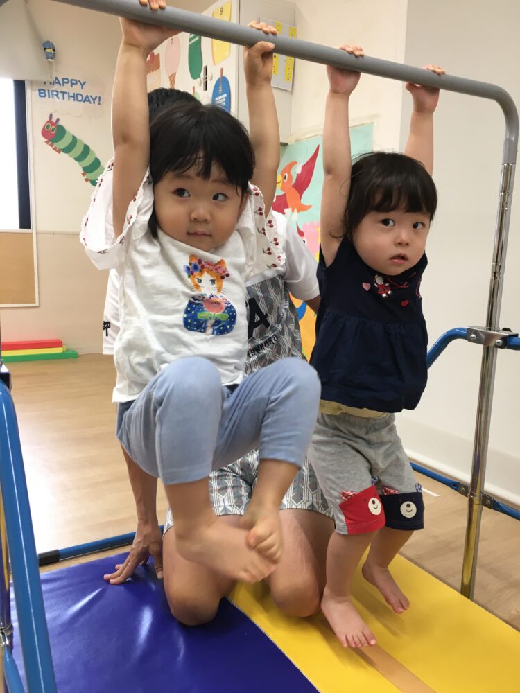 鉄棒にぶら下がる時は、以前はなかなか鉄棒を掴まなかったり、足が上がらなかったりしましたが、今回は自ら鉄棒を掴んだり、足を上げようとする姿が見られたりして、成長が感じられました☺️