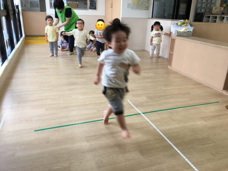 こちらは、体操の先生がマットを倒しておこす「爽やかな風」が吹いてきた時の様子😊