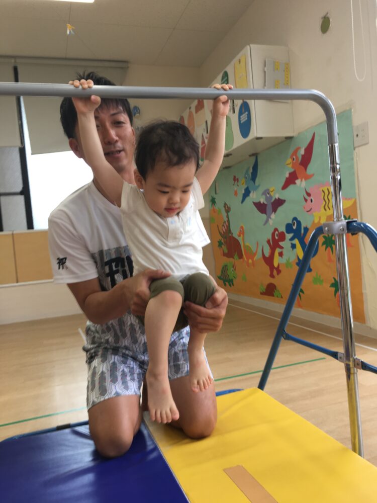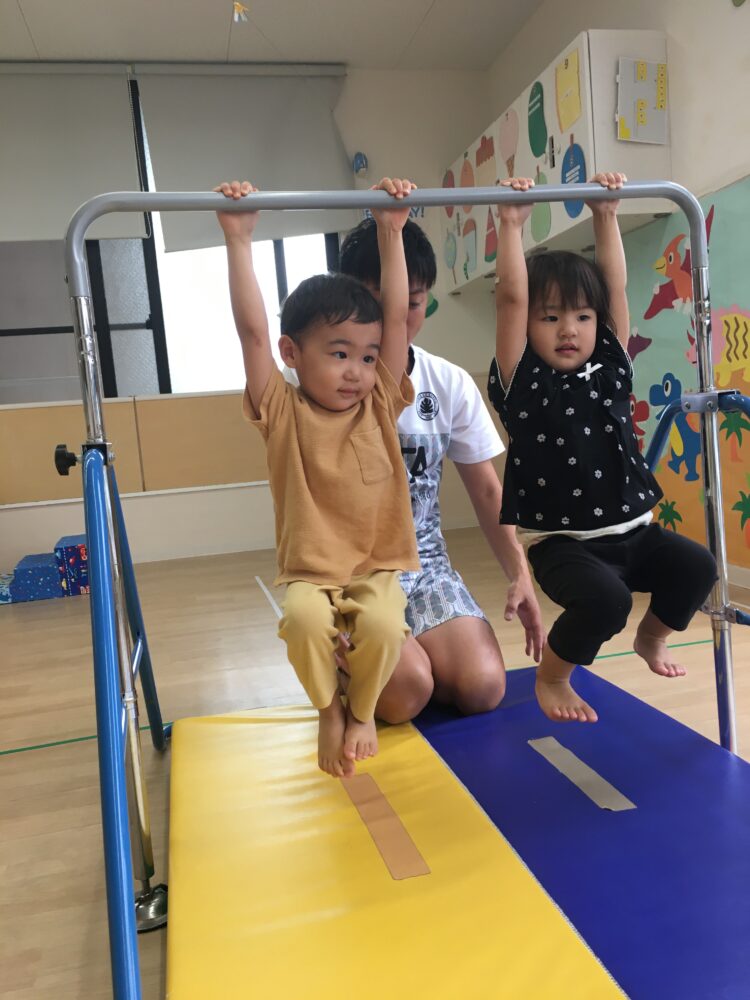 ばなな組さんは初めての鉄棒でしたがチャレンジ精神旺盛で、ぶら下がりに挑戦するとしっかりと鉄棒を握って離すことなく活動ができていました✨