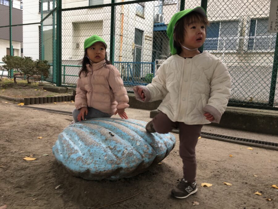 寒さに負けず体を動かしたり、遊具が冬の寒さでカチコチの冷たさでしたが、気にすることなく触れていて、『子どもは風の子』という言葉がピッタリでした。