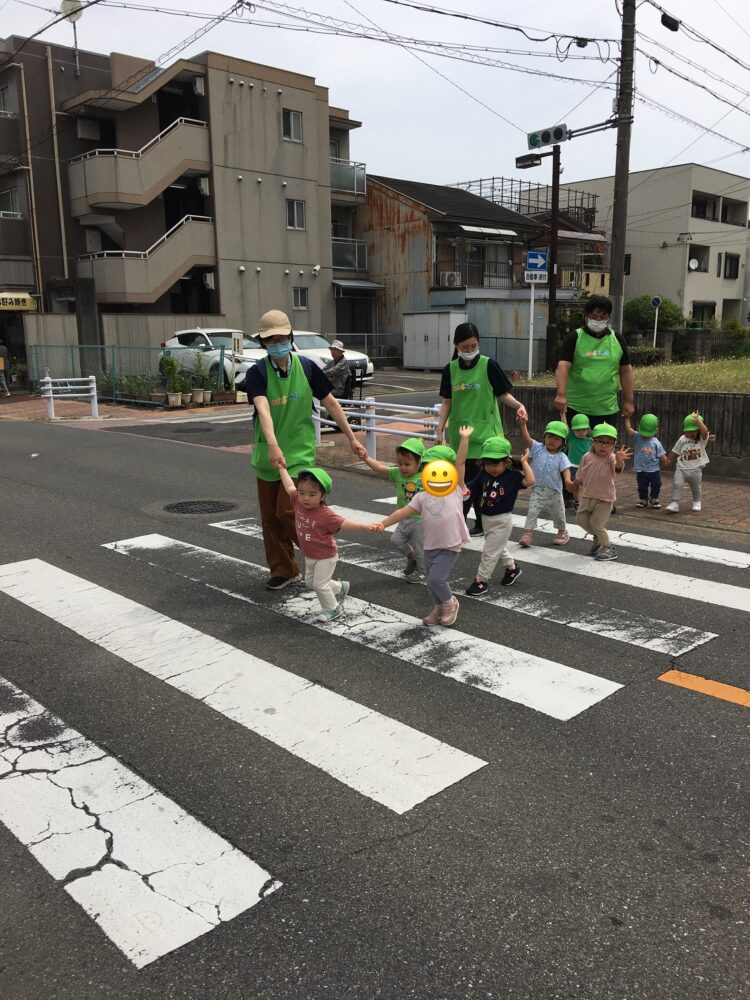 横断歩道ではしっかりと手を挙げてわたれています👏