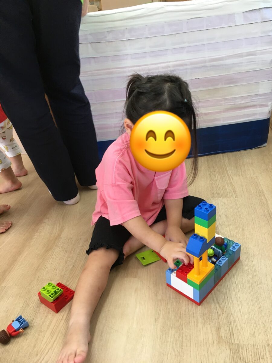 また、友だちと協力して、公園とお家を合体したものを作ったり、ビルをみんなで高くしたりしていました😄