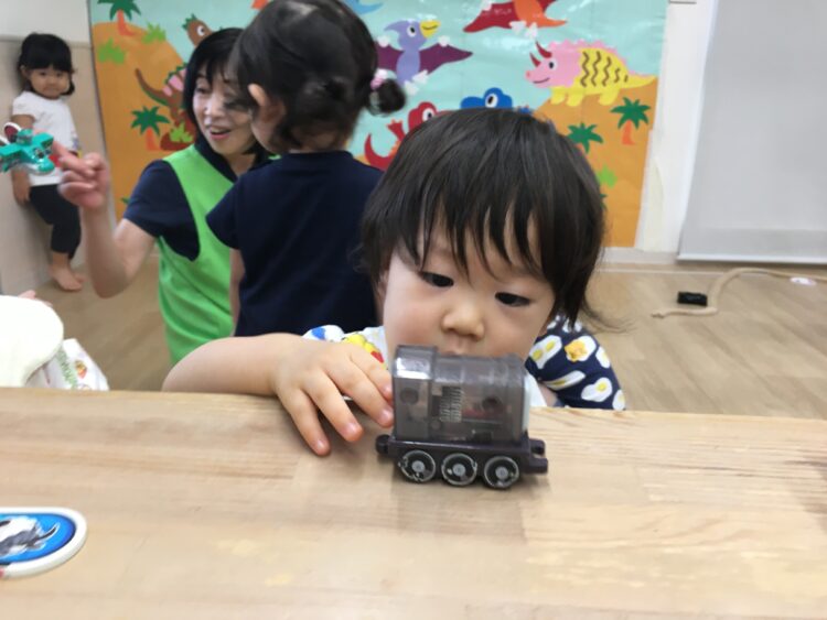 その後は電車、ポットン落とし、積み木で遊びました🤗