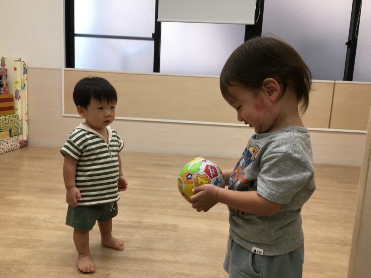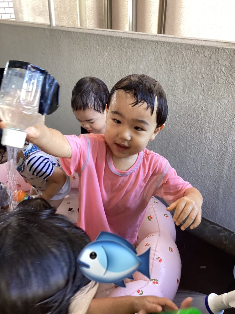 ボトルの中に水を入れてお友達同士で掛け合って、キャーキャーと言いながらとっても楽しそうにしていましたよ🎶