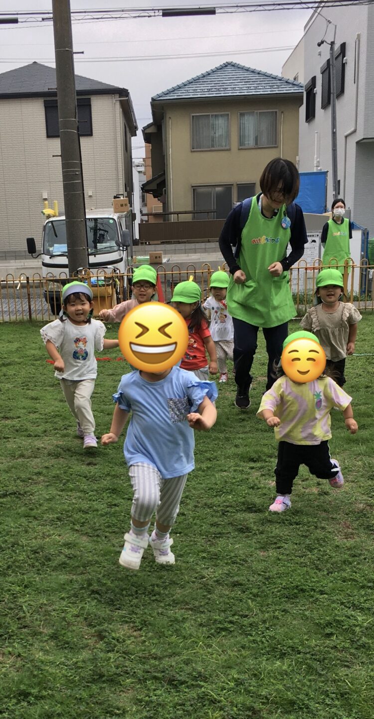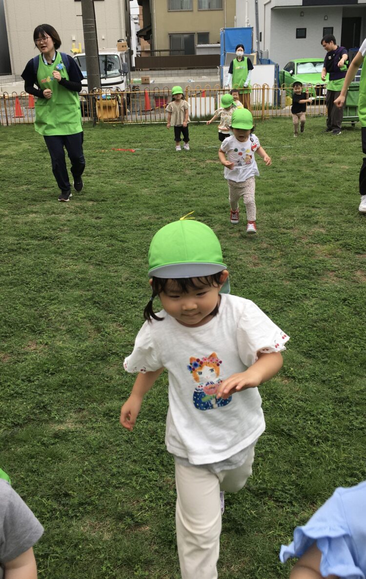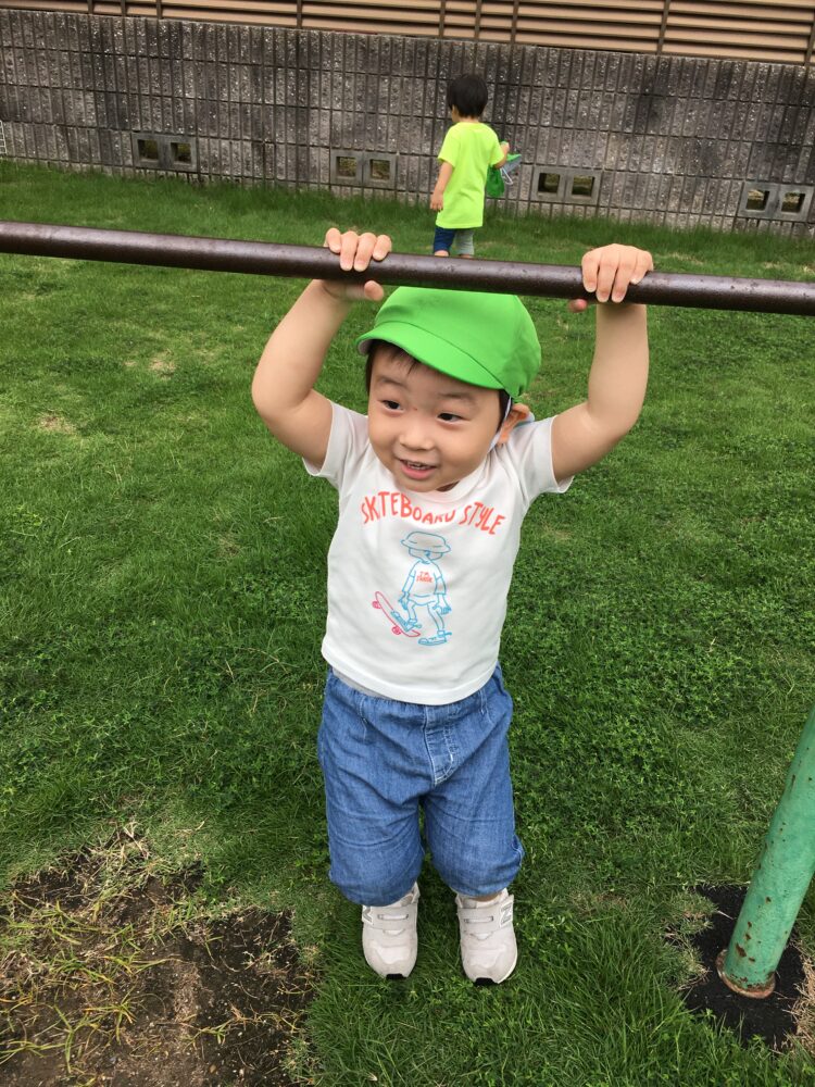 今日は広場に出かけ、みんなで鉄棒やかけっこをして遊びました。