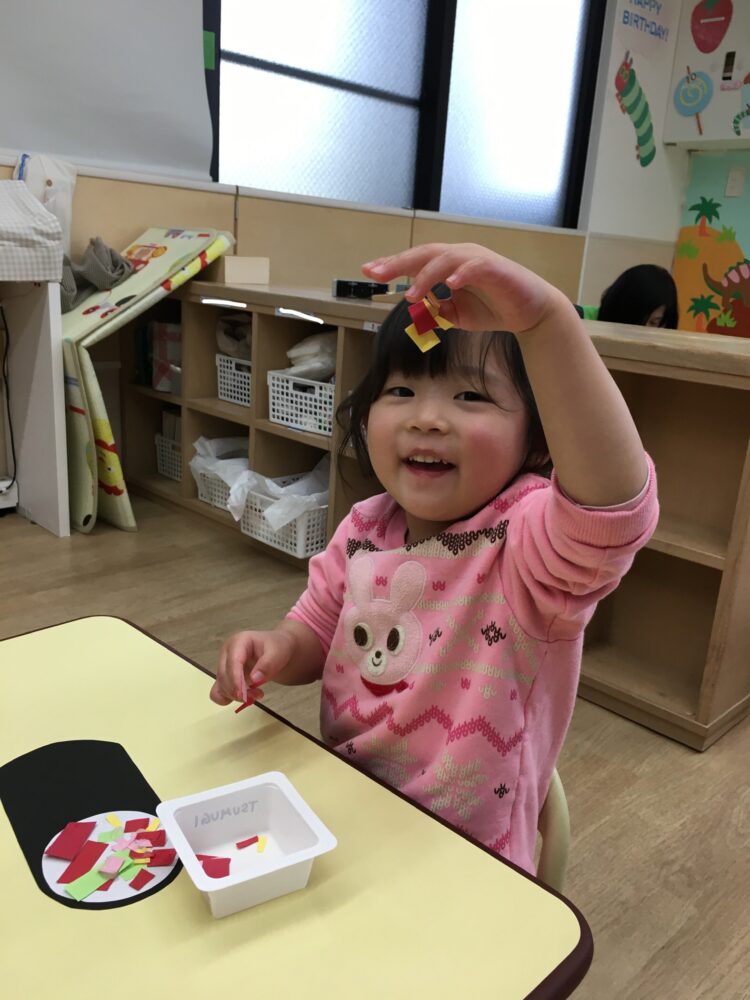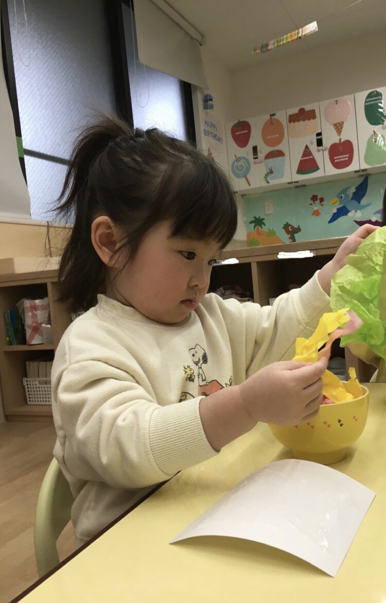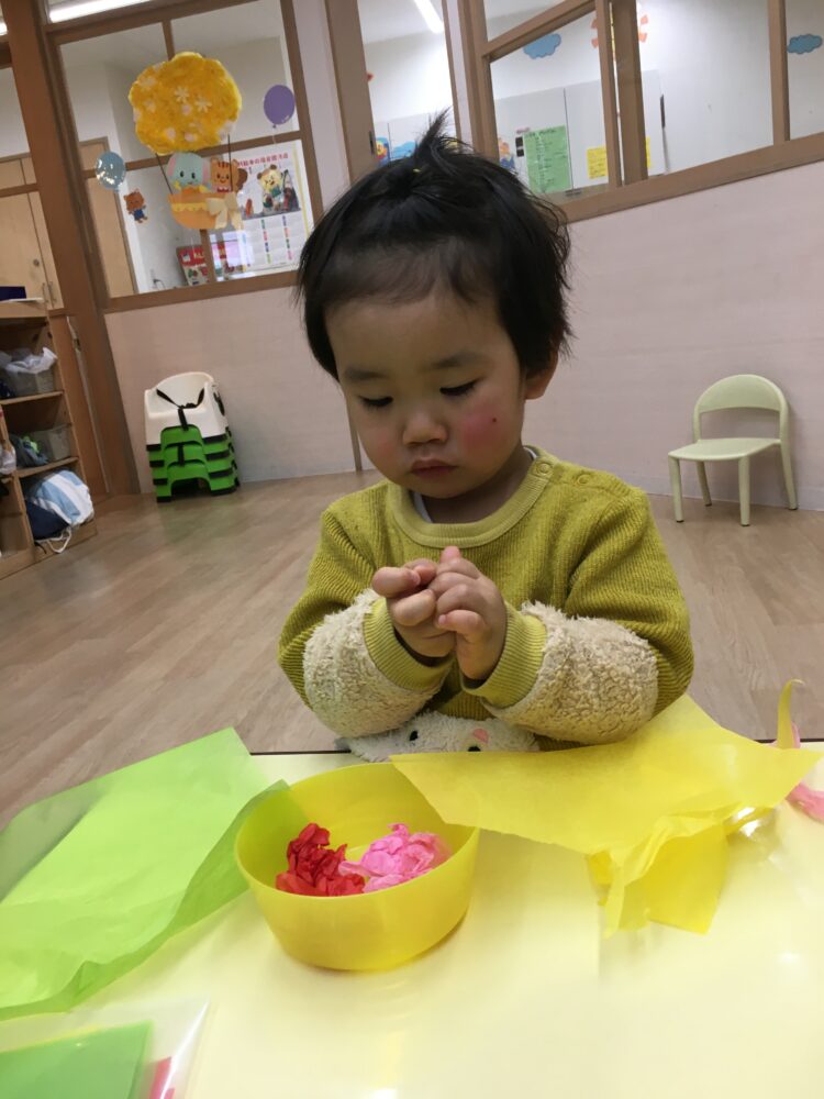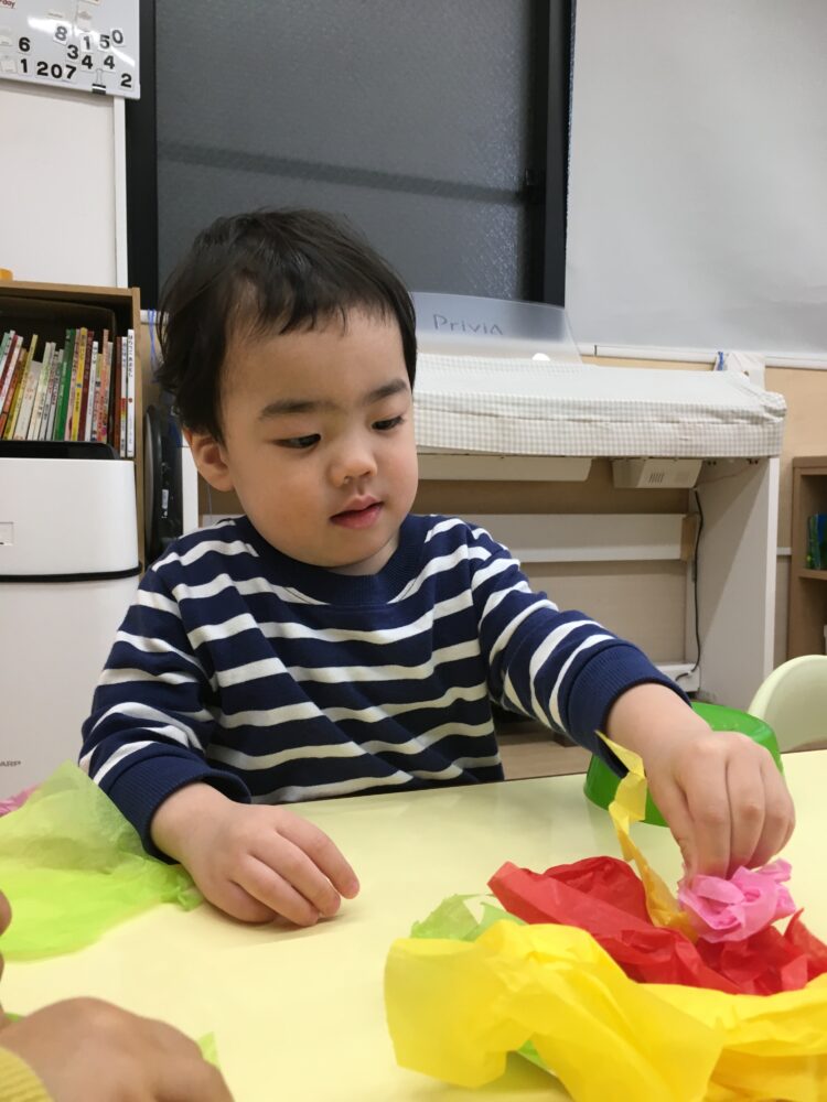 ばなな組さんは、花紙を破ったり丸めたりして楽しく製作を進めました。