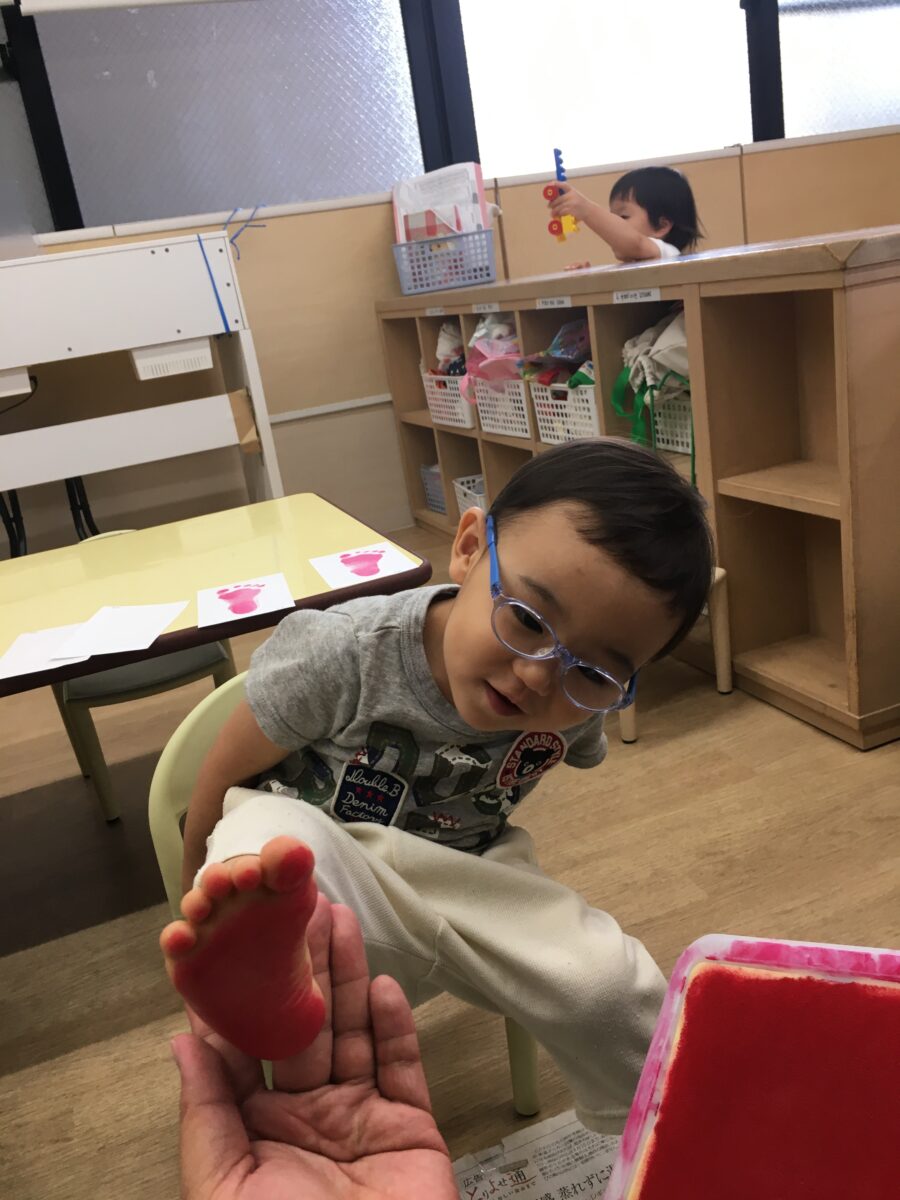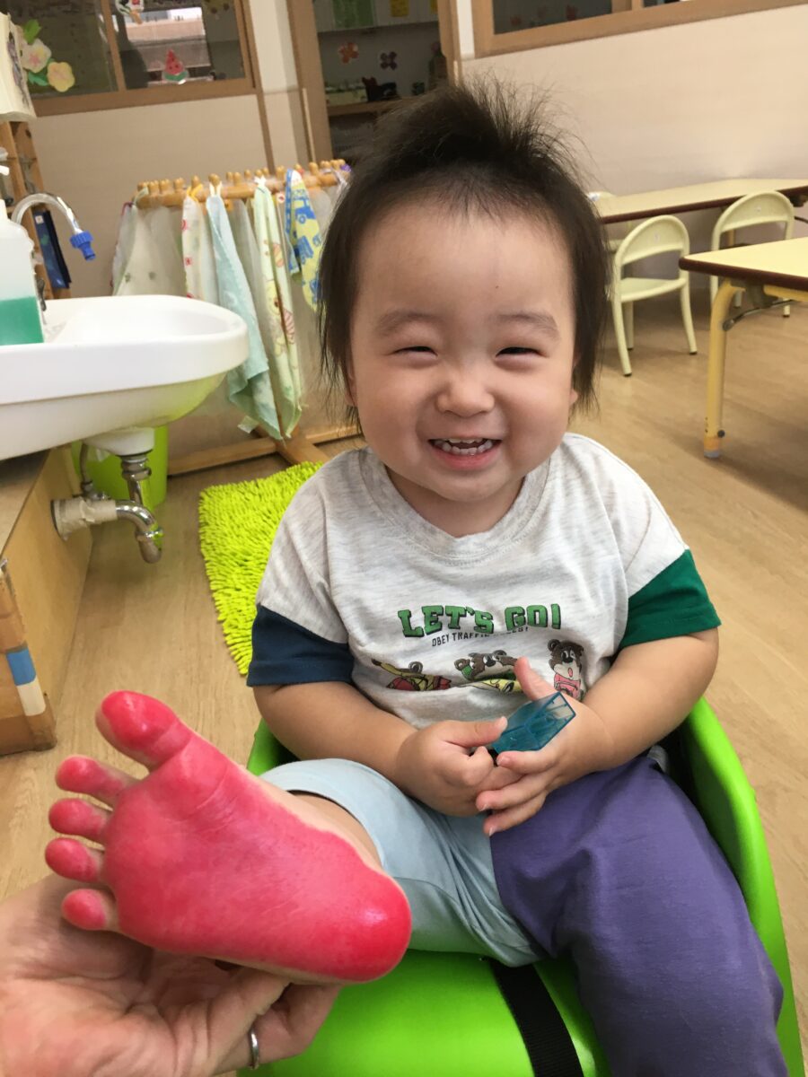 今日は敬老の日のプレゼントに使う手形と足形をとりました😃