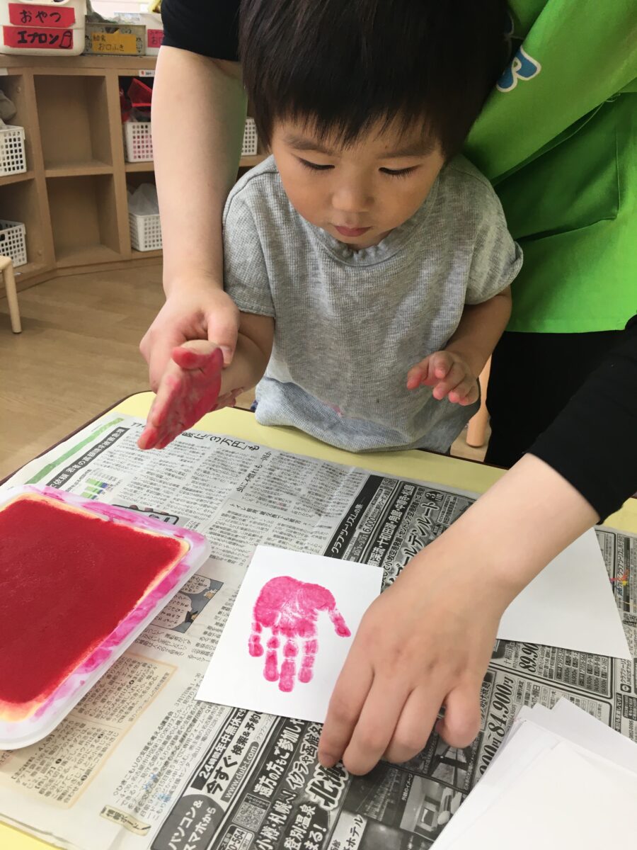 めろん組さんは、自分で押そうとチャレンジする子もいました。紙から手を離す時のドキドキ感が伝わってきました🍀
