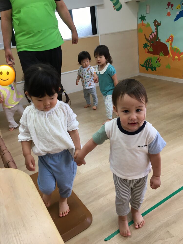 まだ2回目ですが、人見知りして泣く子は誰もいなくて、先生のお話をしっかりと聞いて、音に合わせて身体を動かしていましたよ👍😀