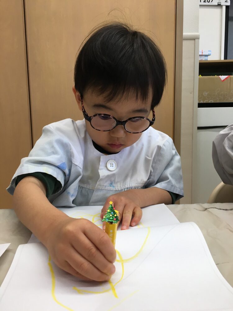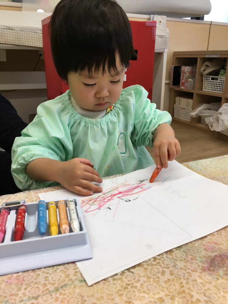 クレヨンを使って、思い思いにサンタの絵を描いたり、欲しいプレゼントを一生懸命考えながら描いたりして、個性豊かな絵がたくさん描かれていましたよ😆