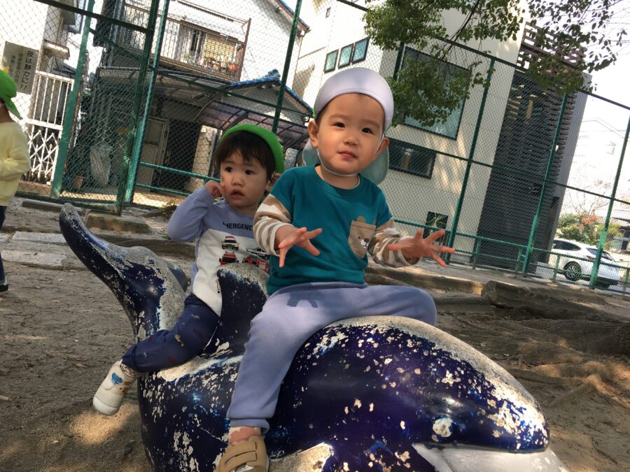風が強くて、出てきたシャボン玉があっという間に公園の端から端まで飛んでいって大はしゃぎでした🫧🤩