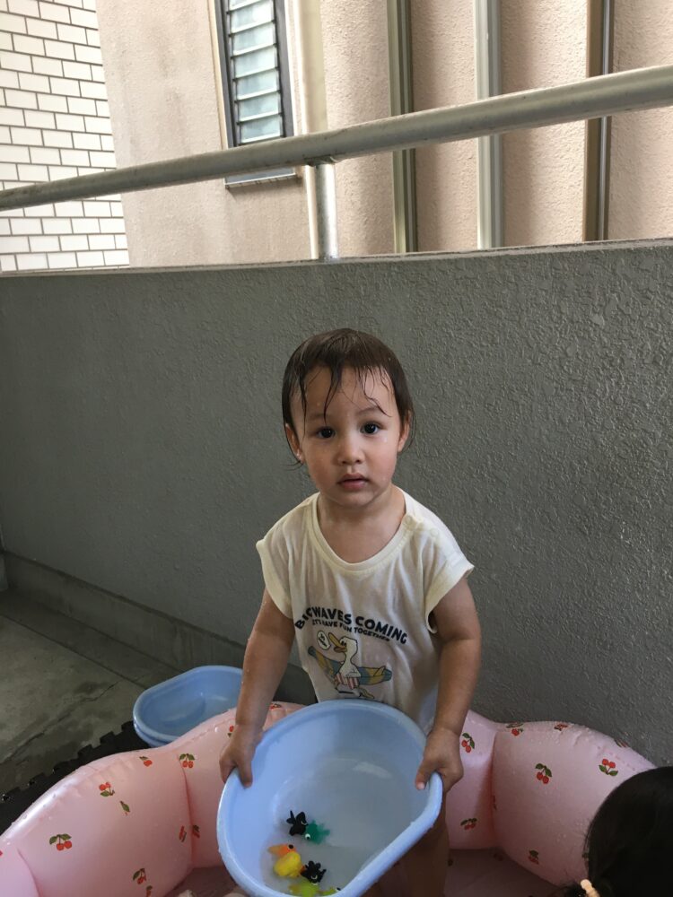 プール遊びの用意を見て「今日プール?」と嬉しそうに聞いてくる子どもたち😆
