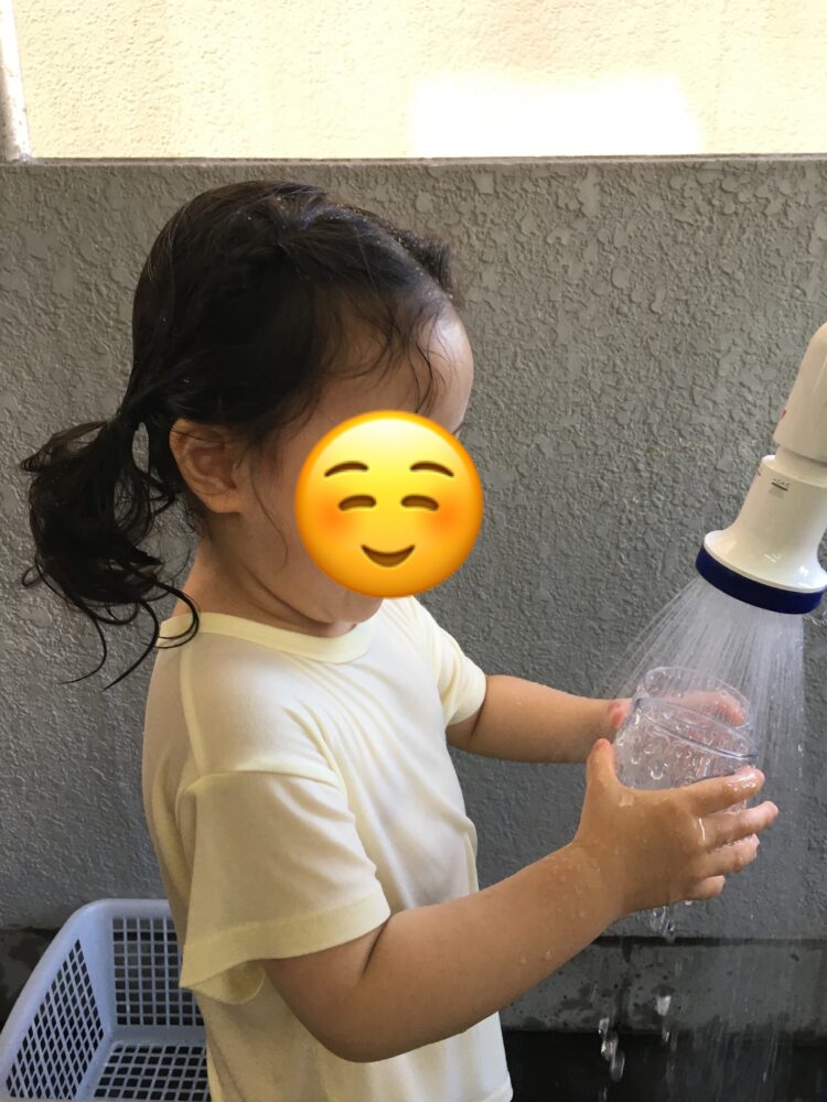 水遊びの最後は暖かいお湯でシャワーをしました。