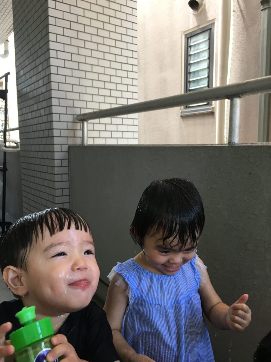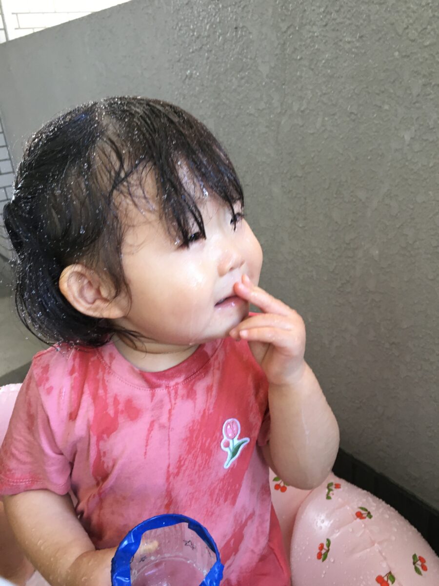 容器から出てくるお水を手の器ですくって遊ぶ姿は子どもらしくて可愛かったです。