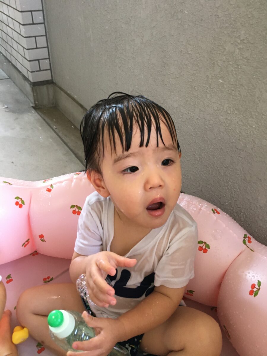 今日の水遊びでは、昨日と同様のシャボン玉と、おもちゃ遊びをしました😃