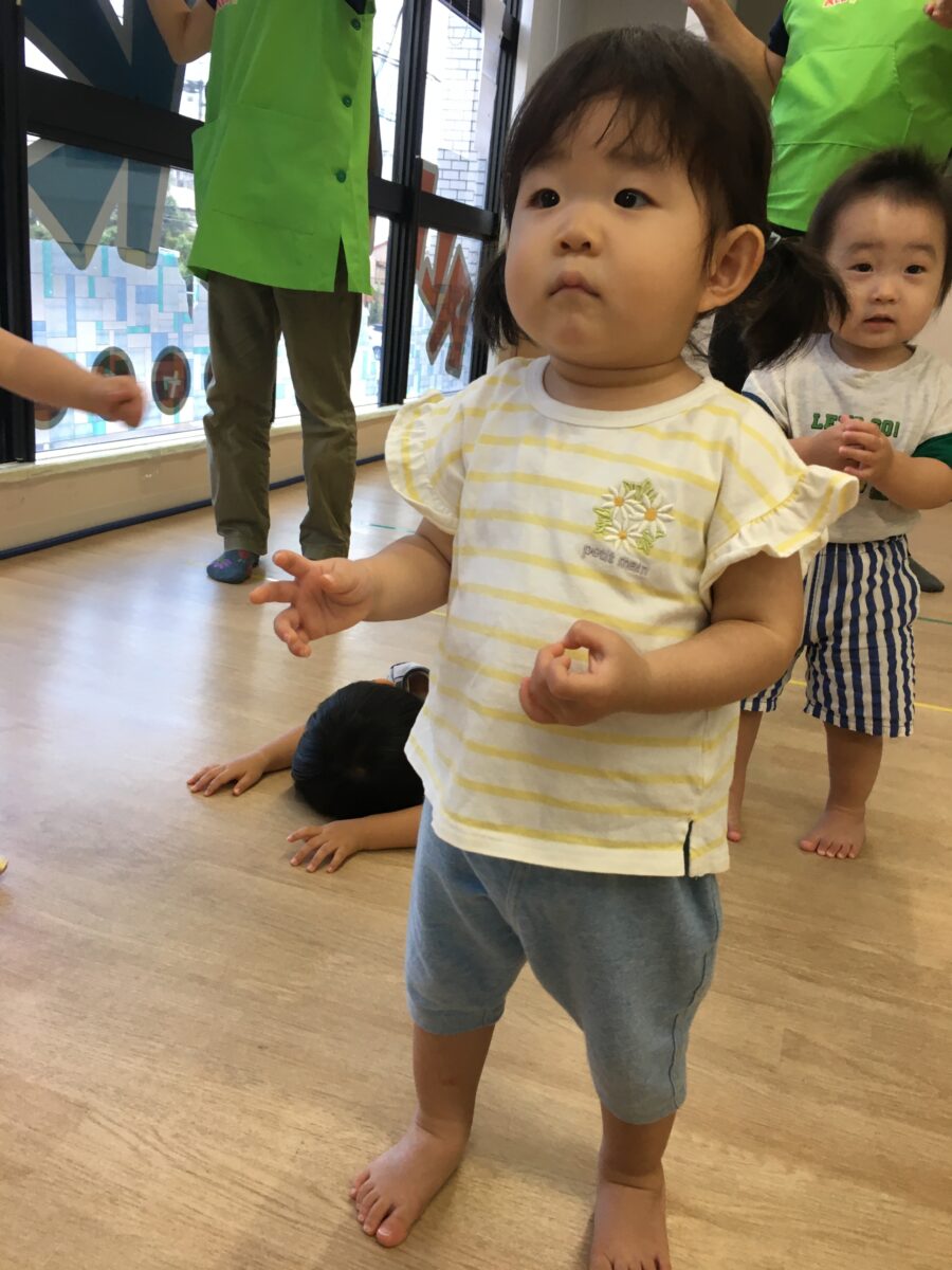エビカニクスでは、手をチョキにしてカニさんのポーズをしながら踊っていました。ばなな組さんもチョキにしてる風に指が動いていて可愛かったです🥰♪