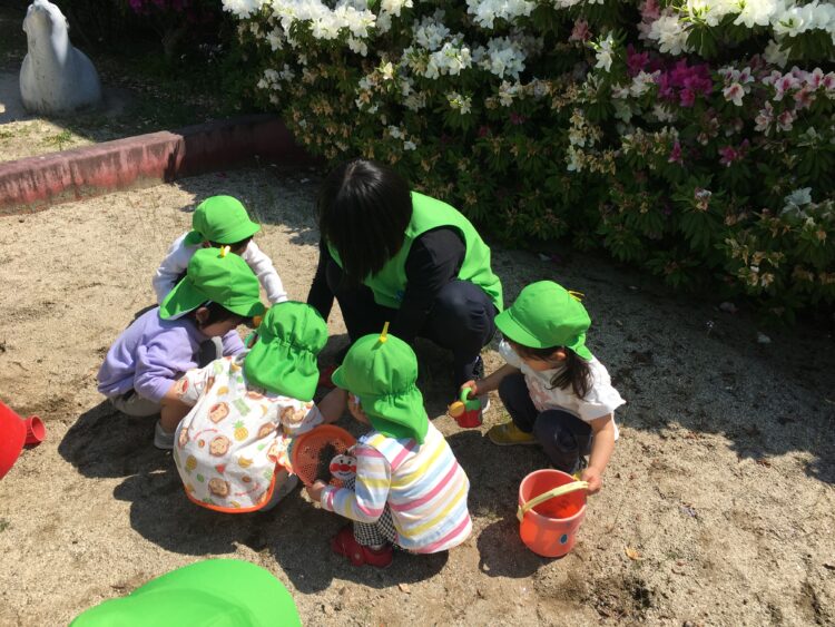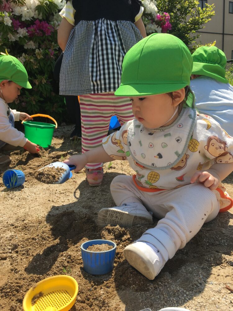 お砂場で遊びながら個々を呼んで写真撮影📸