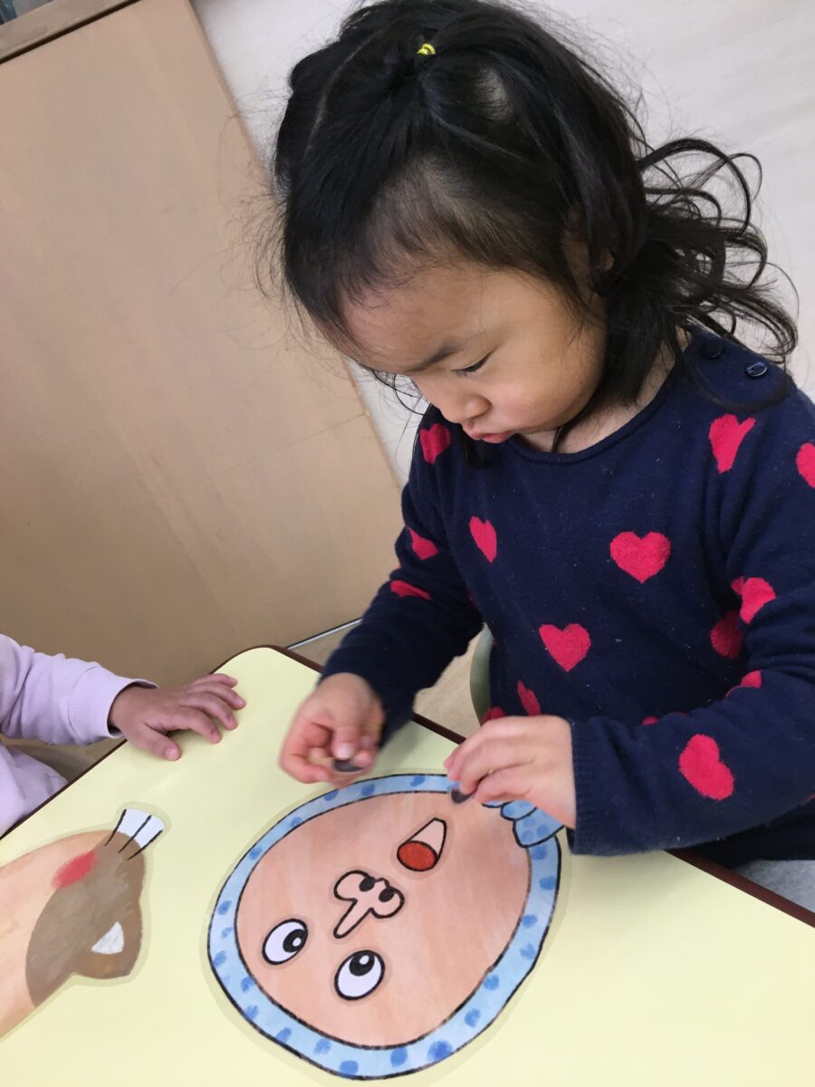 眉毛はどこ?目はどこ?お鼻は?とみんなで確認し合いましたよ😊