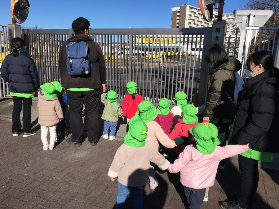 車が行ってからは、柵の前から中を見て、「あっ!ばすがいるー😋」とかなり遠くに停まっていたバスを発見していました👏