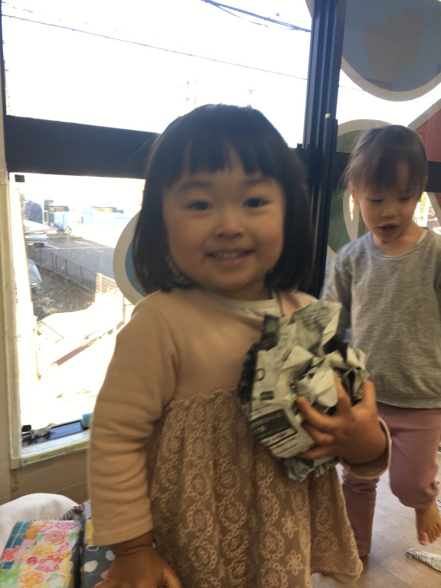 丸めたり、ちぎったり、舞いあげて遊んだりと笑い声が絶えませんでした🤩