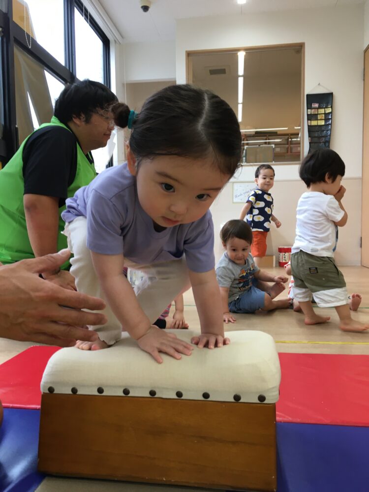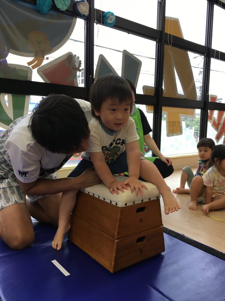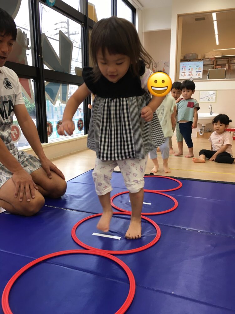 フープジャンプの要領で跳ぶように教えると、一生懸命乗り越えようと頑張っていました!