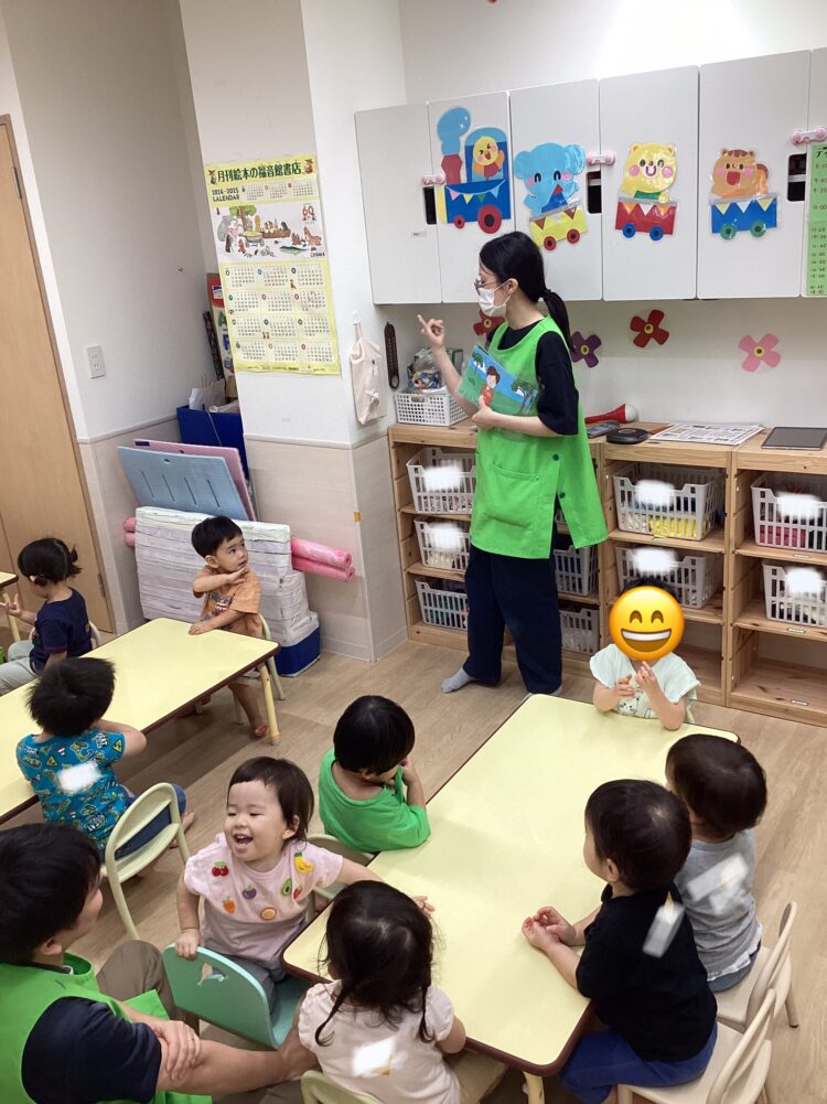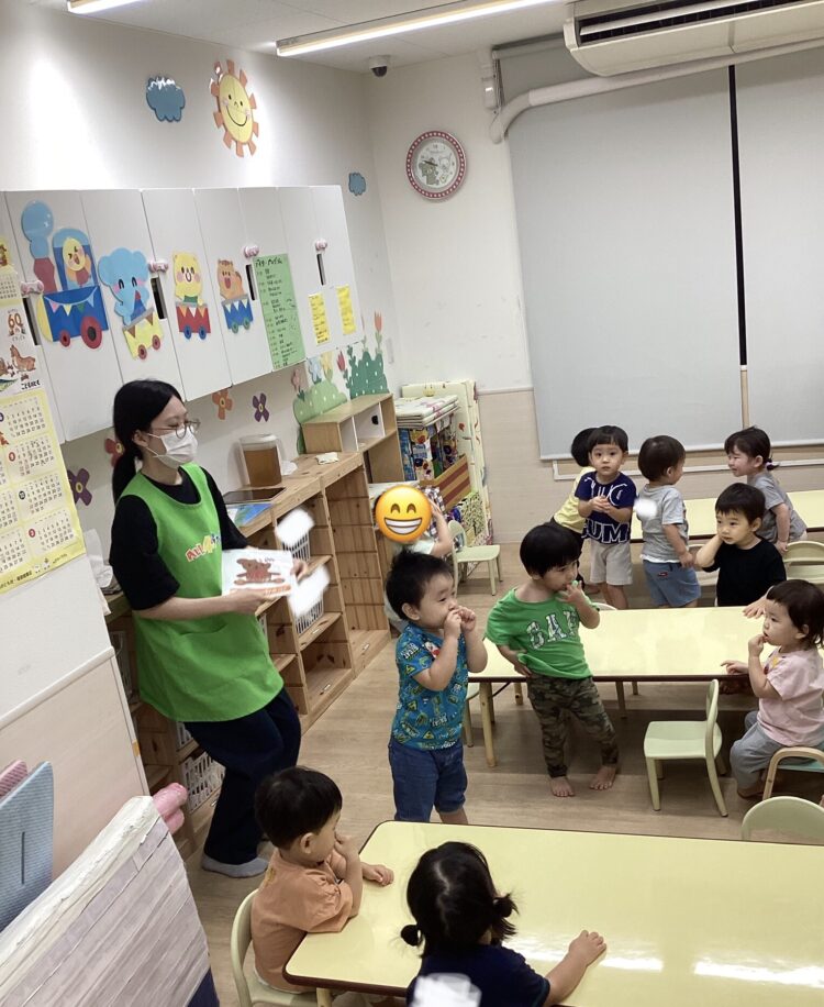 English Timeが大好きな子どもたちは、音楽が流れると、体を動かしながら元気よく歌っています。今日も好きな歌の音楽が流れてくると、お友だちと顔を見合わせて大喜びする様子が可愛らしかったです😁
