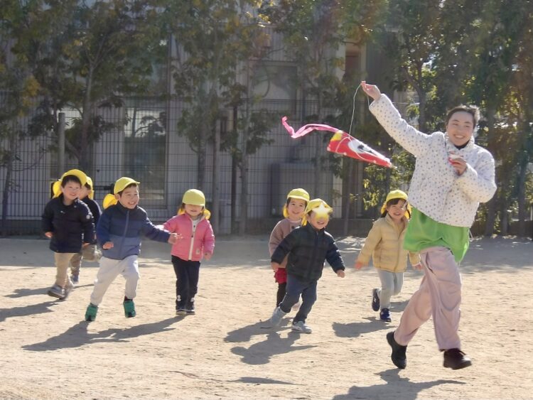 お正月は少しすぎましたが、凧揚げをすると楽しそうに追いかけて走る姿が。