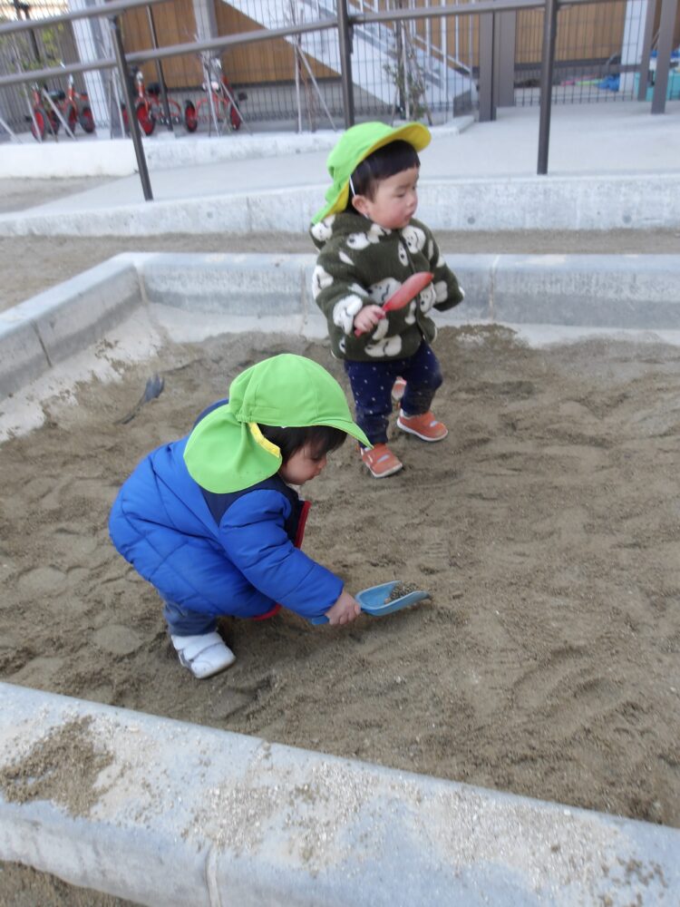 ひよこ組のお友だちは、だんだんと探索活動から、おもちゃを使ったあそびに興味がうつってきましたよ。