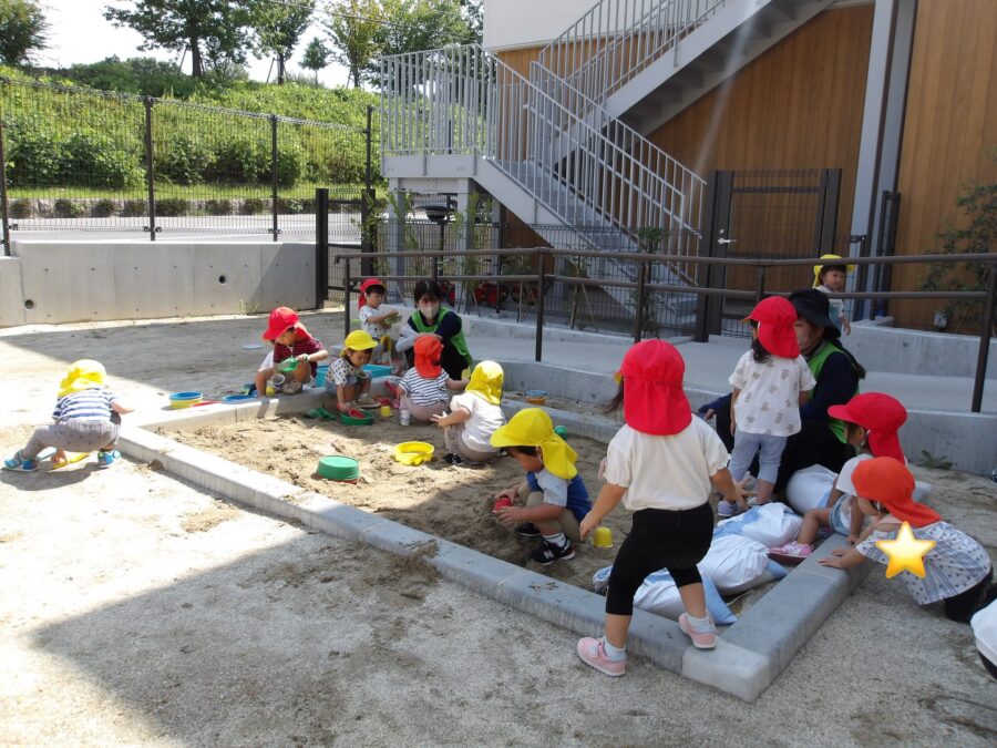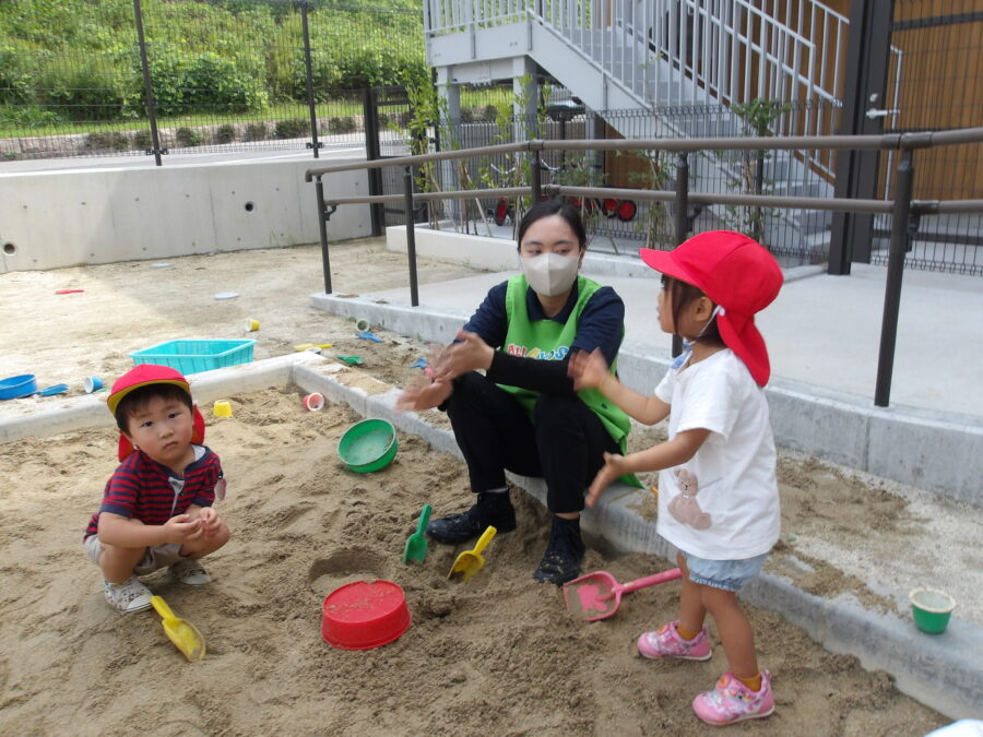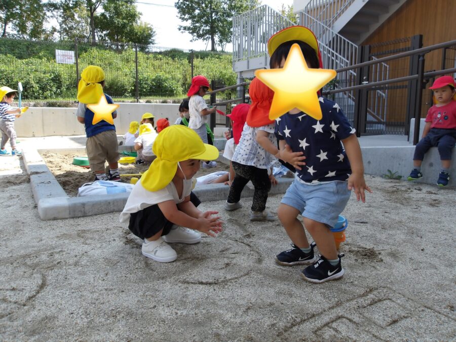 砂場で砂遊びを楽しんだりと、みんな思い思いに好きな遊びを楽しんでいましたよ![]()