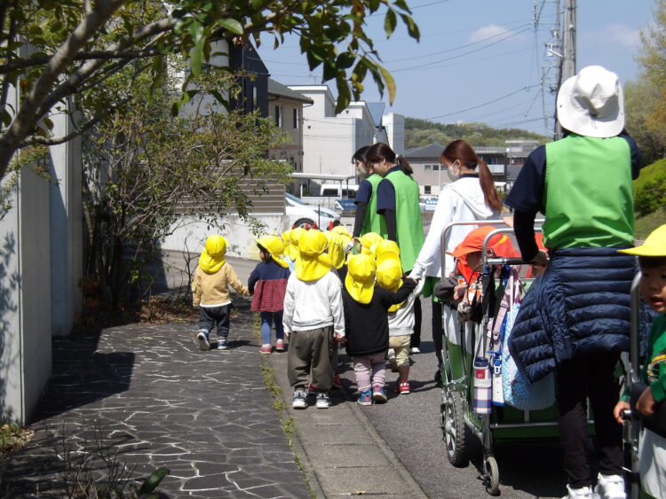 うさぎぐみのお友だちは歩くのが上手になって、しっかりお友だちと手を繋ぎながら進んでいきます。