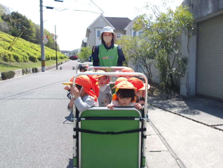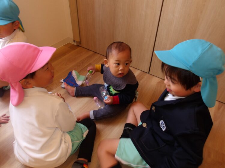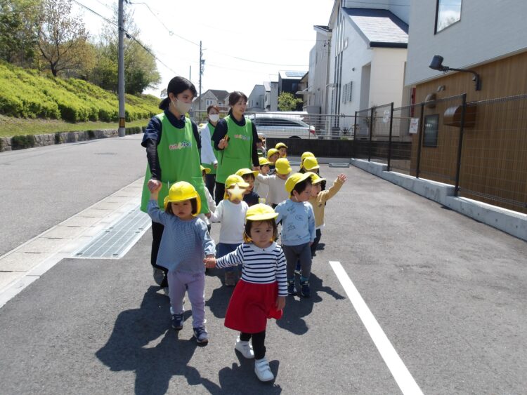 保育園に帰ってくると、園庭で遊んでいた年上のお友だちが「おかえりー!」と出迎えてくれ、嬉しそうに手を振り返す子どもたちでした。