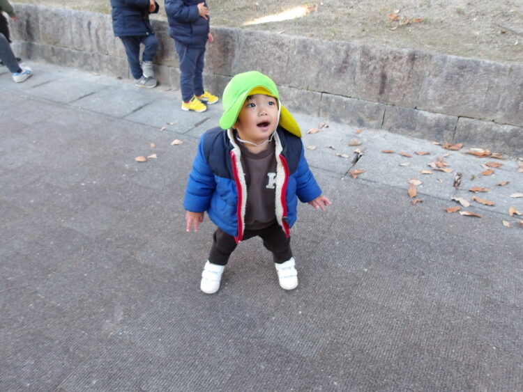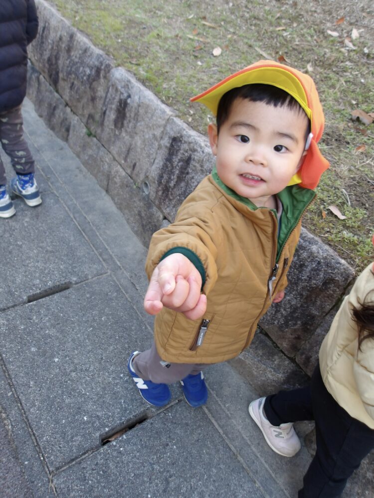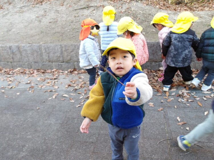 遊歩道では木の枝や葉っぱ、どんぐり集めを楽しんでいた子どもたちです!
